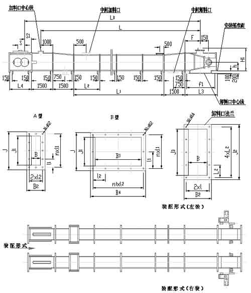 MS32、MS40型埋刮板輸送機安裝尺寸表(mm):