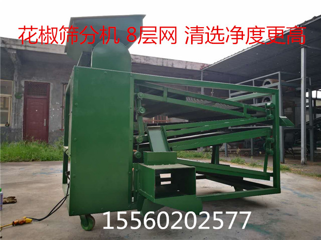 2 花椒篩采用脫枝打糍與多層不同樣式篩板組合而成,對(duì)枝,籽,殼,土等雜質(zhì)快速分離節(jié)約勞動(dòng)力。